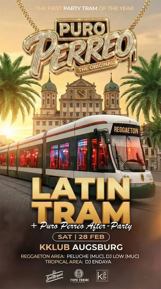 Am 28. Februar verwandelt Copa Caribe Augsburg erneut in die heißeste Party-Route des Landes – mit einem Event, das es nur ein einziges Mal in ganz Deutschland gibt: die legendäre Reggaeton-Tram! 🚋💃🏽🕺🏽